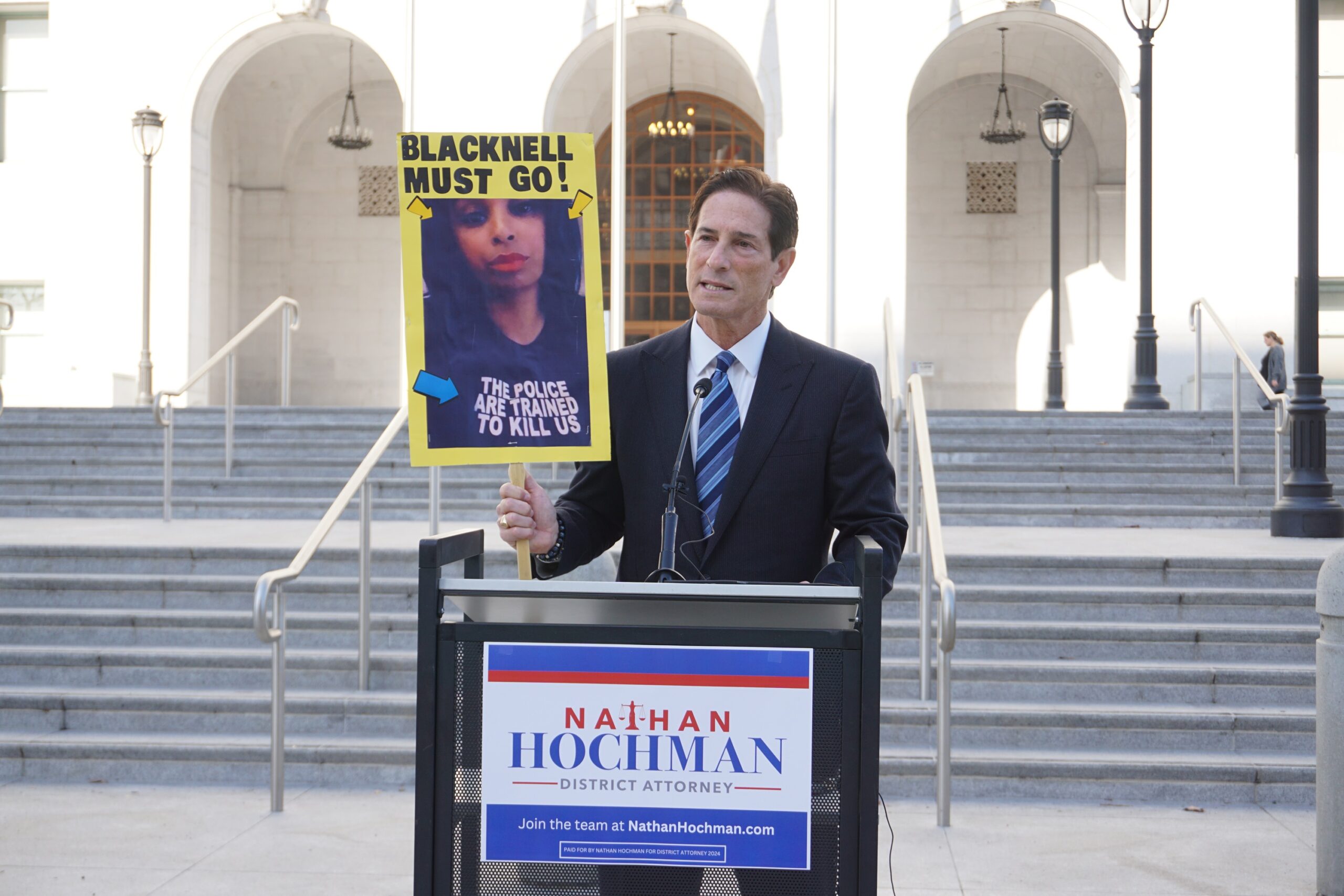 In a news conference outside the Hall of Justice in downtown Los Angeles, Hochman said the appointment of Ms. Blacknell is a “slap in the face of law enforcement,” and that she is not qualified to serve as Chief of Staff because she has no prosecutorial experience and has supported and advocated for criminals instead of crime victims.