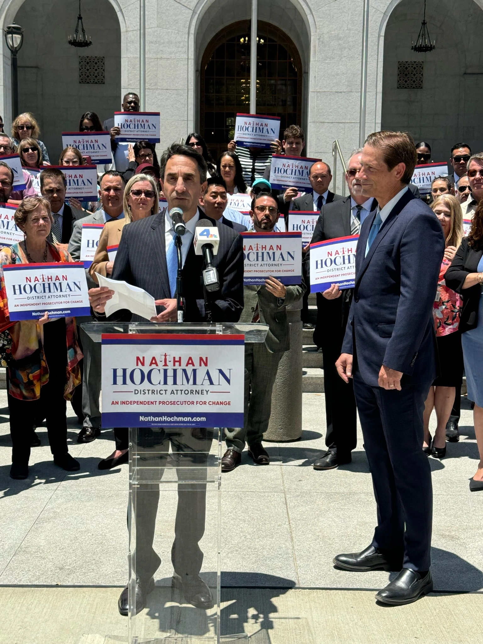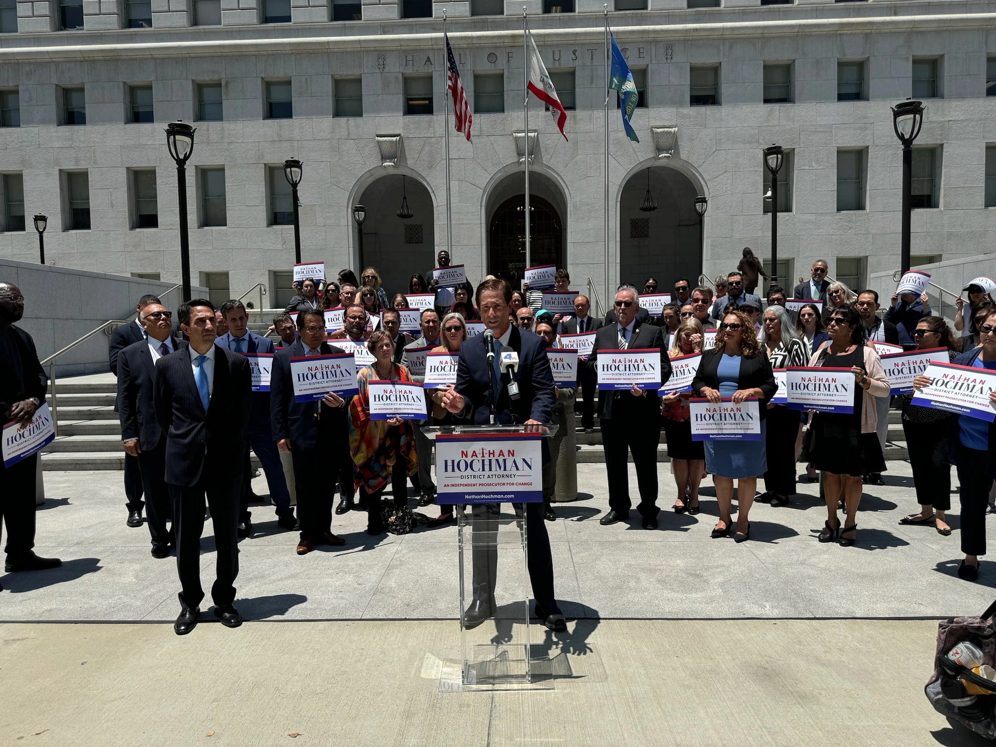 Michael Harris, cofundador de The Last Mile, una organización sin fines de lucro que ha reducido en gran medida la reincidencia al enseñar habilidades de codificación a los reclusos, dijo: “Hoy estoy aquí para respaldar a Nathan Hochman como Fiscal de Distrito del Condado de Los Ángeles porque el Sr. Hochman está excepcionalmente calificado. y tiene un currículo equilibrado. Se desempeñó como Fiscal Federal y abogado defensor. Nathan entiende la ley de ambos lados”.
